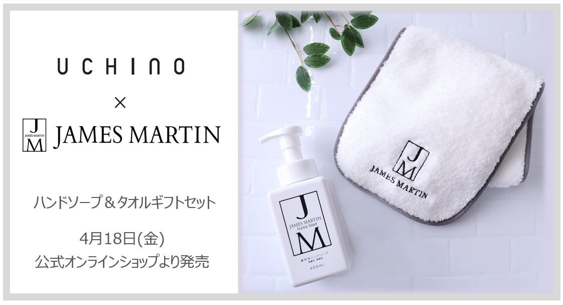 内野株式会社(本社:東京都中央区/代表取締役社長:内野孝信)は、株式会社ファーストコレクション(本社:東京都港区/代表取締役:竹内 伸介)が展開する『JAMES MARTIN(ジェームズマーティン)』とオリジナルタオルを共同開発したことをお知らせいたします。吸水性とやわらかさ、さらに抗菌防臭性に優れたこのタオルは、ジェームズマーティンならではのオリジナルデザインと使いやすいサイズに仕上げています。本商品は、ジェームズマーティンのハンドソープとセットになった「ハンドソープ&タオルギフトセット」として、2025年4月18日(金)正午より公式オンラインショップ(https://www.jamesmartin.jp/buy/)にて販売を開始いたします。