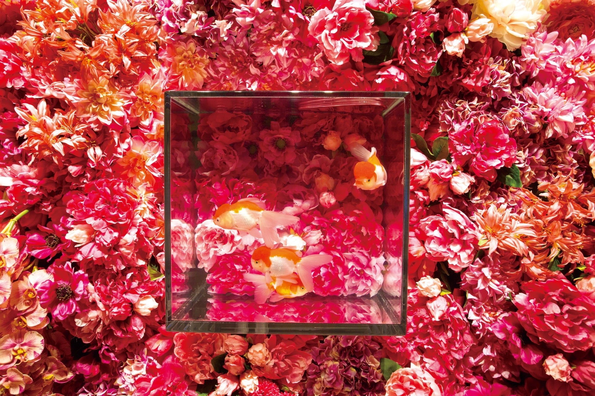 華やかで美しい羽衣をまとった、生命のアートである金魚をかぐや姫に見立て、ネオジャパネスクに仕立てあげた空間です。