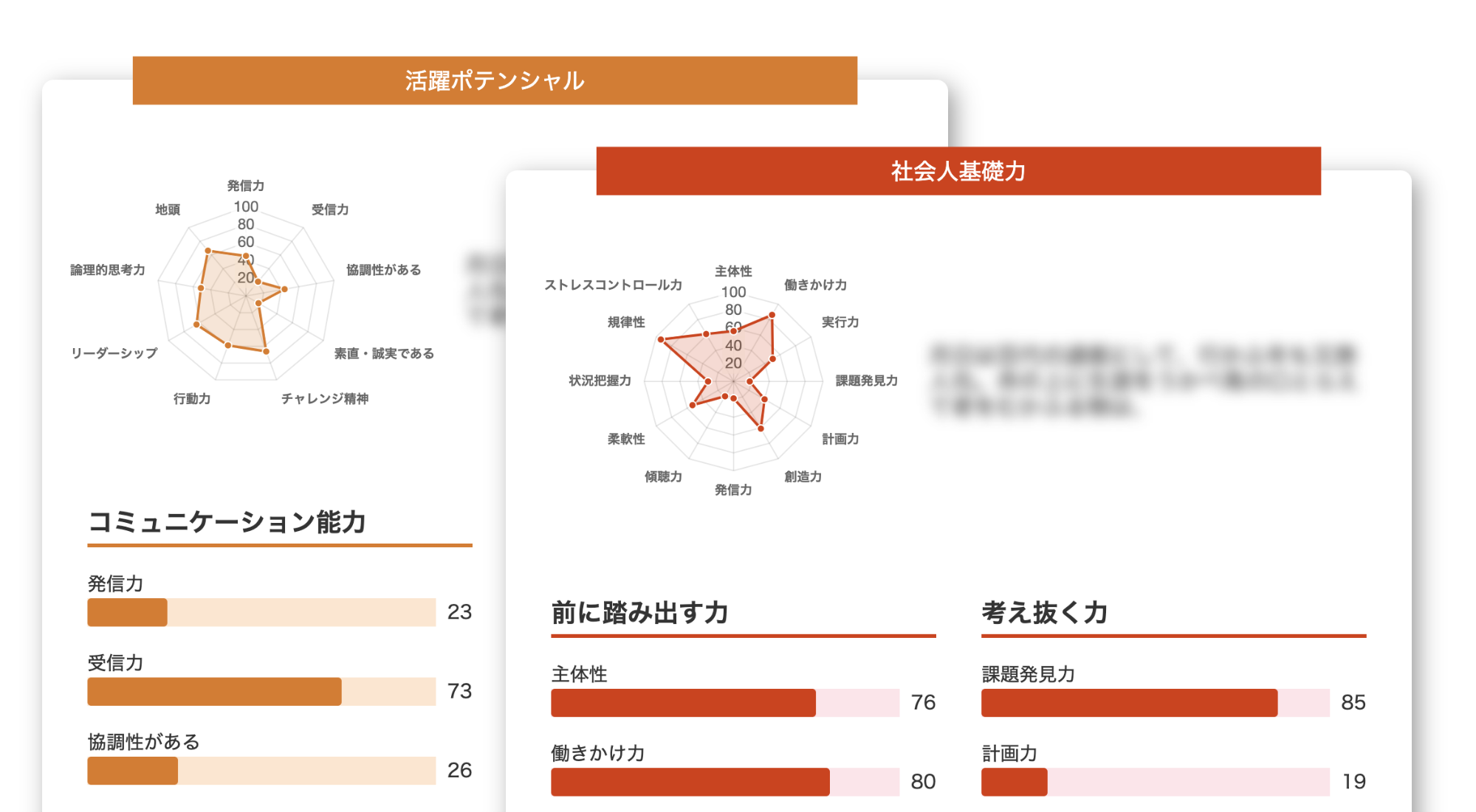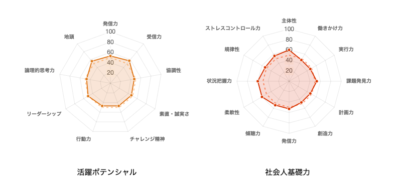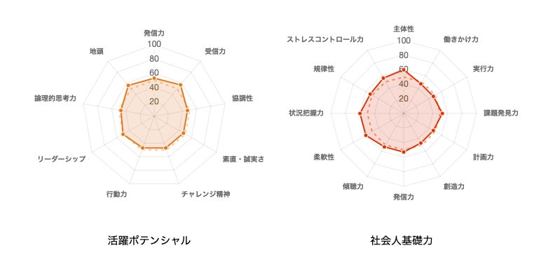 今回の適正診断では、経済産業省が提唱している、「職場や地域社会で多様な人々と仕事をしていくために必要な基礎的な力」を構成する3つの能力と12の能力要素を基にした「社会人基礎力」と、就活生に企業が特に求めている項目9つに特化した、チアキャリア独自の診断である「活躍ポテンシャル」を同時に測定。活躍ポテンシャルは、日頃企業の採用支援をする中で、求める人物像として挙げられることの多い項目を選出。就活だけでなく、社会人になってからの素養・適正を考えるための自己分析・採用ツールとなっています。