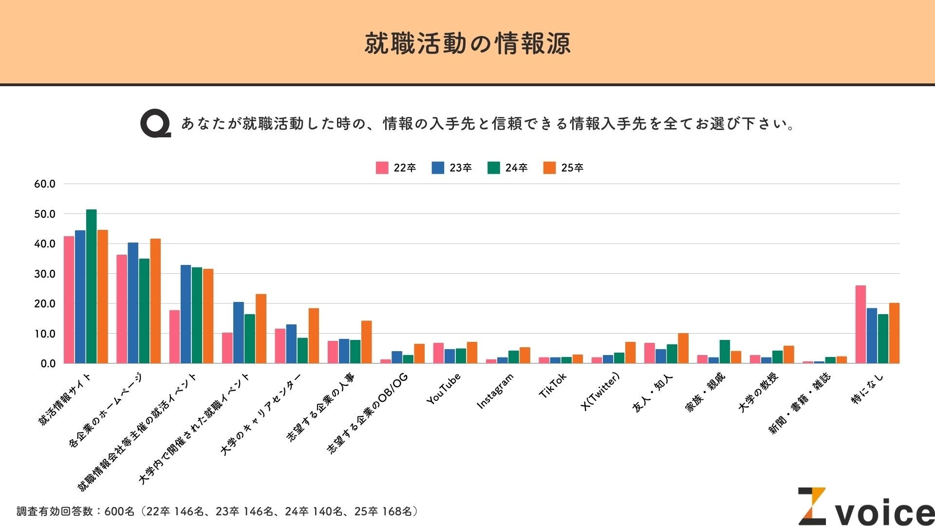 特に、大学内で開催された就職イベントは、25卒の23.2%が情報入手先として挙げており、他の世代よりも高い数字となりました。