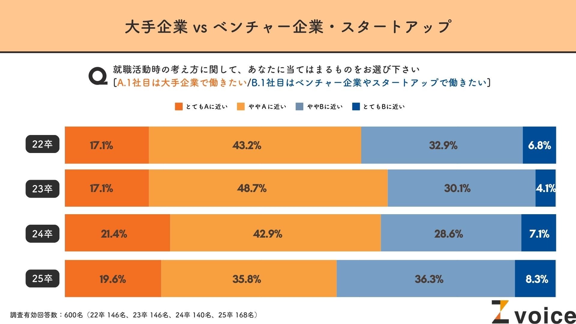 25卒の44.6%はベンチャー企業やスタートアップで働きたい