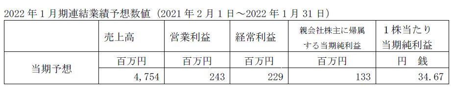 また、アピリッツは2021年12月28日に株式会社ムービングクルーの株式を取得し、完全子会社化しております。これに伴い2022年1月期第4四半期より連結決算へ移行しており、このたび2022年1月期の連結業績予想もあわせて公表いたします。