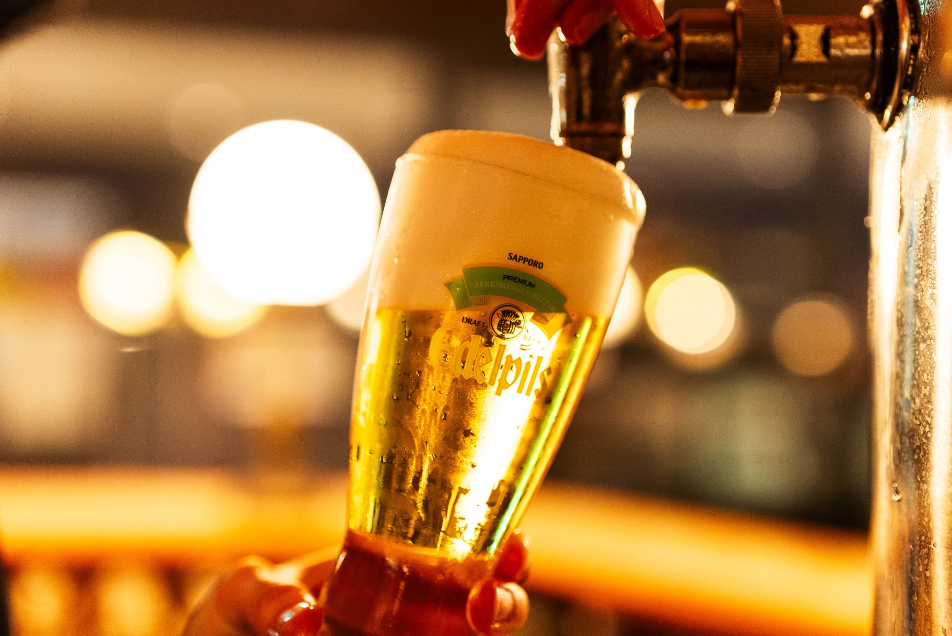 一度注ぎで注いだ後に、レトロ式カランでしか出せない優しい泡を注ぎます。エーデルピルスをしっかり感じながらも柔らかい喉越しで、味わいの余韻を楽しめます。