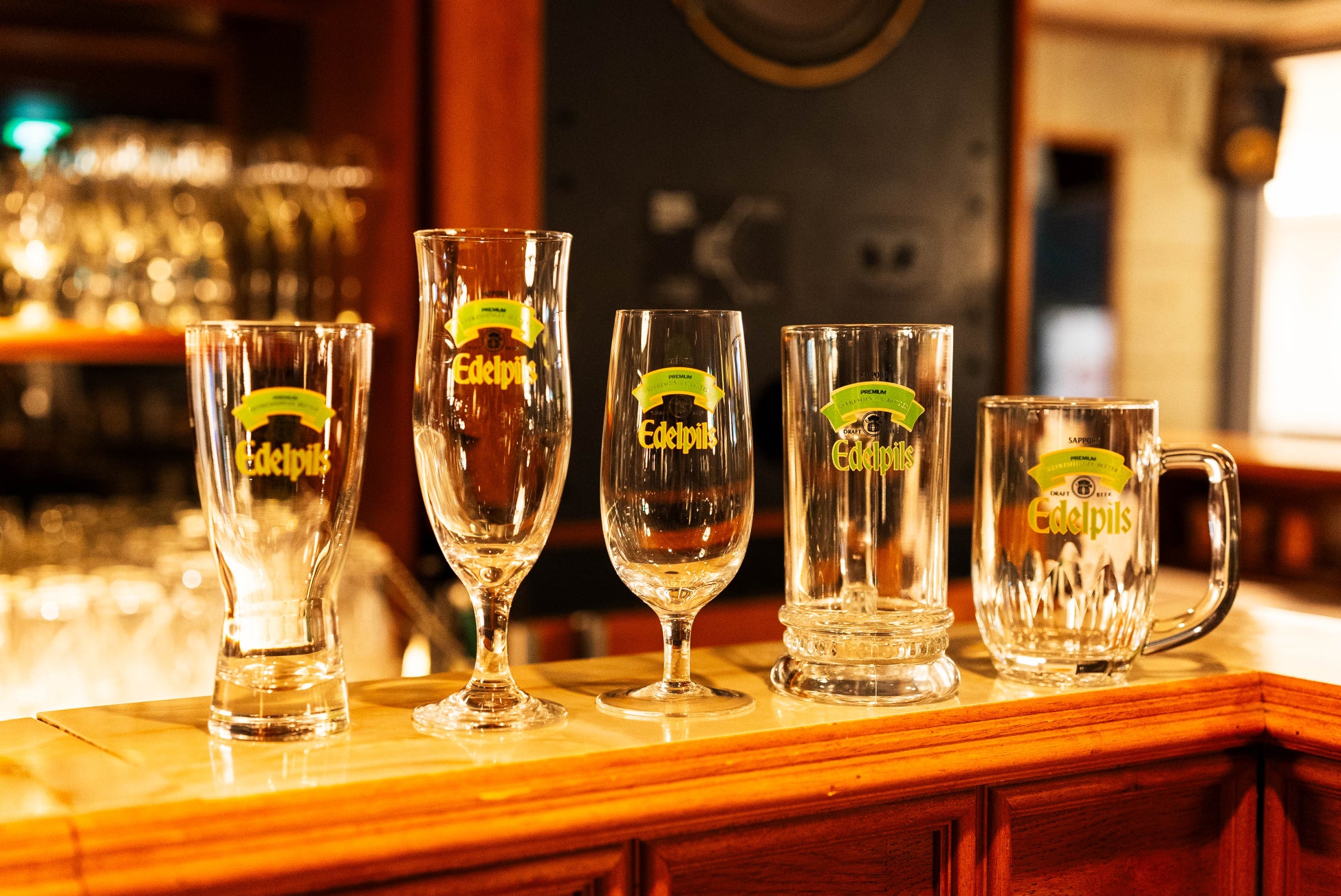 グラス・ジョッキは現在一般的に使用されている「エーデルピルス」専用のグラス・ジョッキに加え、林慧が個人的に集めたすでに廃盤となっているものも含めた5種類をご用意いたしました。