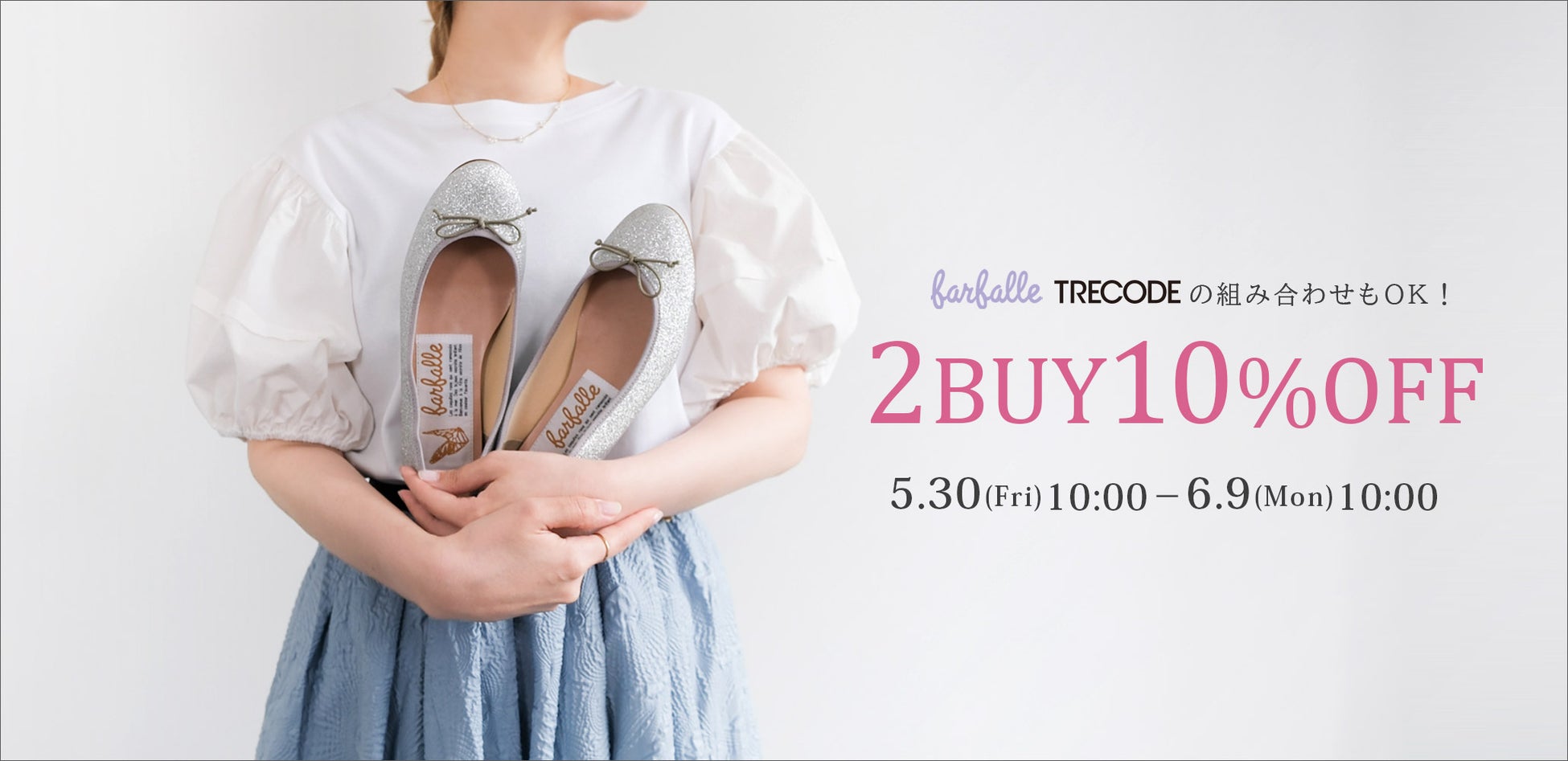 「ここち良さを、あたらしい視点から」を企業理念に掲げるレディースアパレルの株式会社クロシェ(代表取締役:沼部 健、本社:神戸市中央区=以下、クロシェ)は、バレエシューズブランド【farfalle/ファルファーレ】とレディースアパレル【TRECODE/トレコード】の対象商品を2点以上お買い上げで、10%引きとなるキャンペーンを実施いたします。