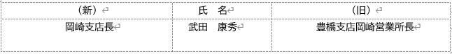 - 1.岡崎営業所の名称変更(営業所から支店へ変更)