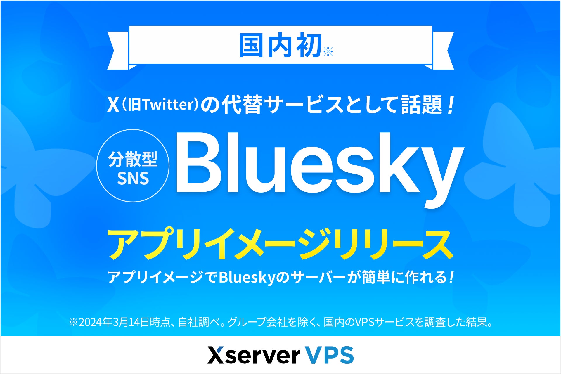 エックスサーバー株式会社(所在地:⼤阪市北区、代表取締役:⼩林 尚希)は、2024年3⽉14⽇、仮想専用サーバー『Xserver VPS』にて、国内のVPSサービスで初となる(※1)、知識不要で簡単にBlueskyのサーバーを構築できるアプリイメージ「Bluesky」をリリースしました。