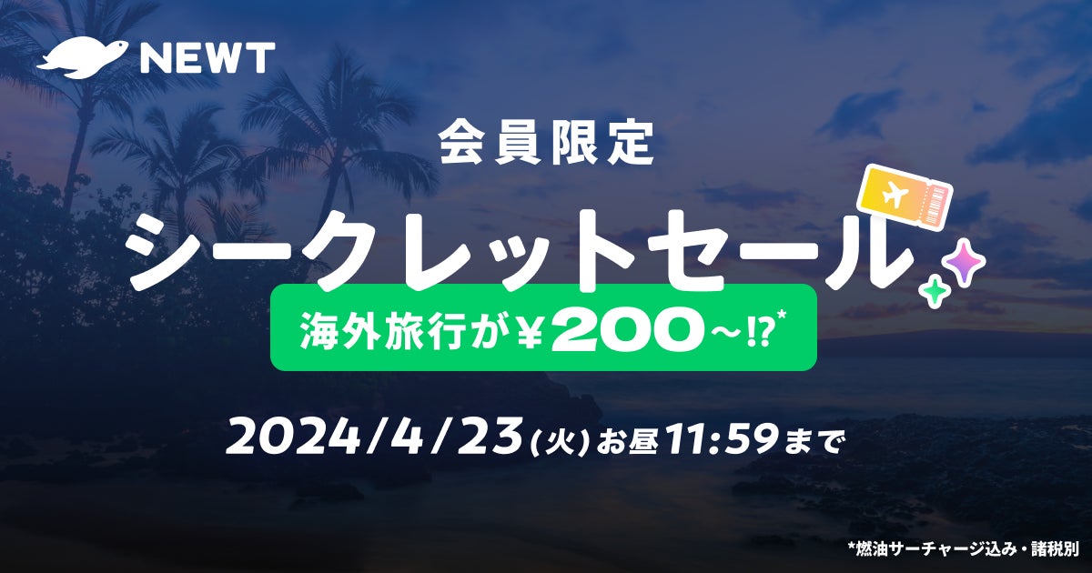 海外旅行が200円から!? NEWT会員のみなさまへ、感謝をこめたサプライズ価格