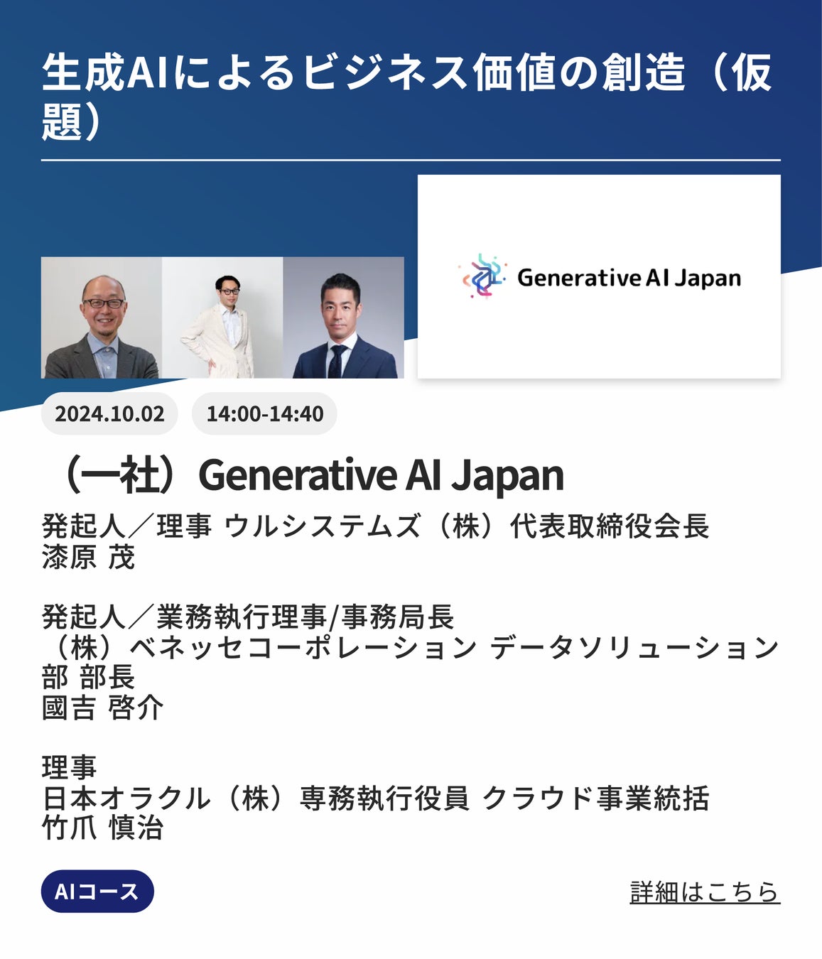 AIソリューションが一堂に集結する展示会を開催/成田 悠輔、Generative AI Japan、ベネッセホールディングスなど豪華講師による特別セミナーも