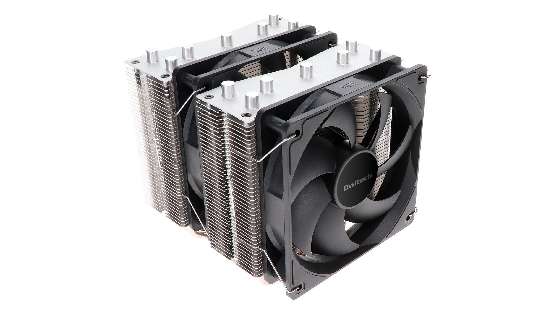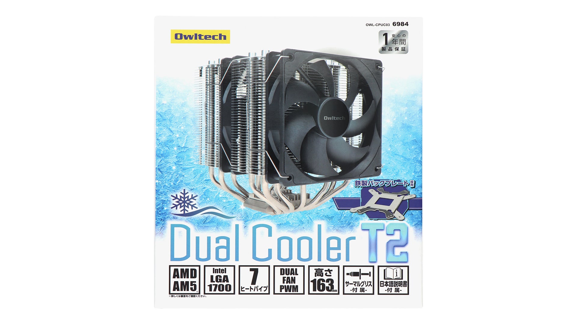 本空冷クーラーはオウルテックの現行ハイエンドモデルとなります。120mmデュアルファンのツインタワー型で7本のヒートパイプを配置しているので、冷却性能に優れています。派手さはないもののしっかりと仕事はする、質実剛健な空冷クーラーです。