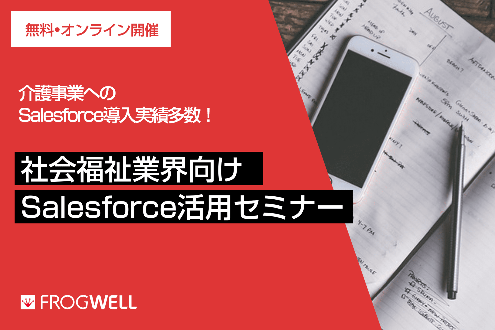 そこで、フロッグウェルでは社会福祉業界向けのSalesforceの活用方法を学ぶセミナーを開催いたします。社会福祉業界のSalesforce導入実績・事例をお伝えをしながら情報をお届けします。社会福祉業界関係者、オープンデータ活用・導入を検討されている方には必見の内容となっております。ぜひ奮ってご参加ください。