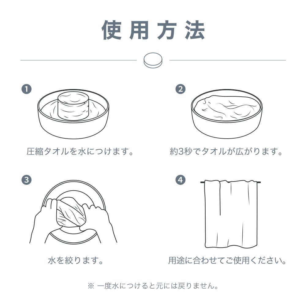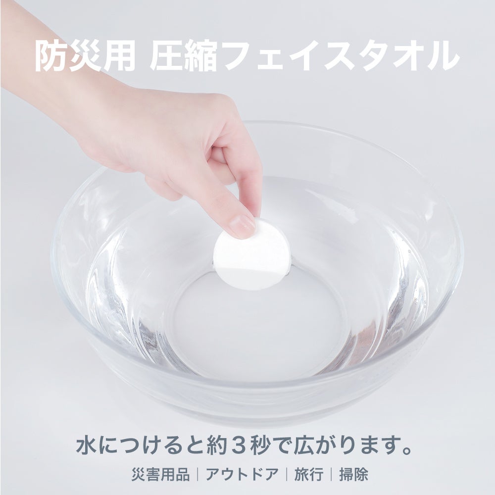 持ち運びしやすい圧縮タイプ、吸水性バツグン!スペースを取らずに常備できるので、防災備蓄品としても、また家庭用備蓄品としても非常に使い勝手の良い、便利なタオルです。災害・緊急時の必需品として、防災グッズの中に常備しておくアイテムとしてたいへんオススメです。