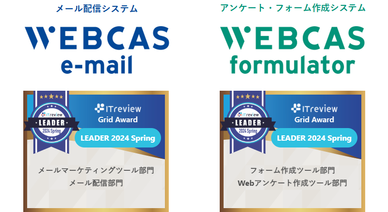 WEBCAS、「ITreview Grid Award 2024 Spring」のメールマーケティングツール部門やWebアンケート作成ツール部門などで最高位の「Leader」を受賞