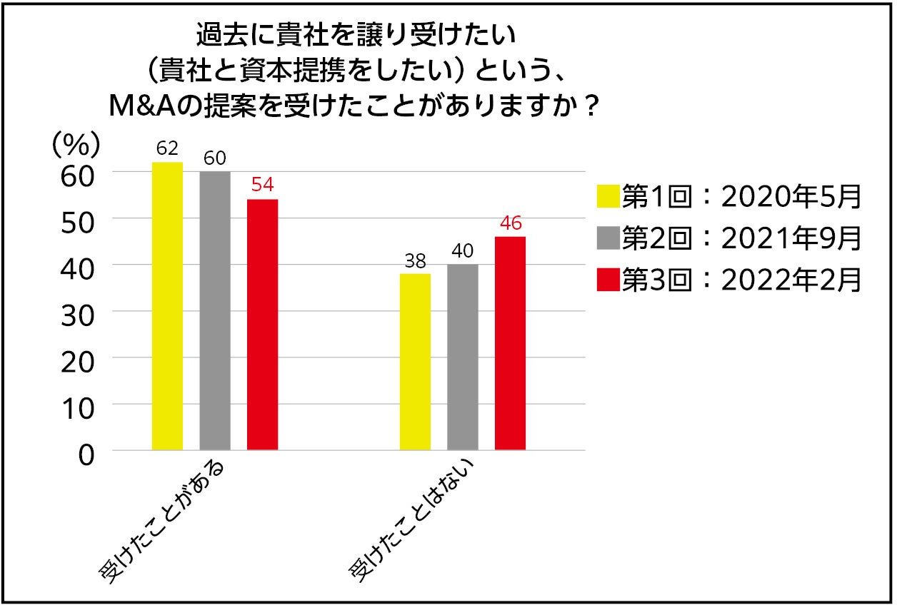 M&A仲介会社や譲受企業から直接M&Aの打診を受けたことがある経営者は5割超となり、業界全体では引き続きM&Aが活発であることがうかがえます。
