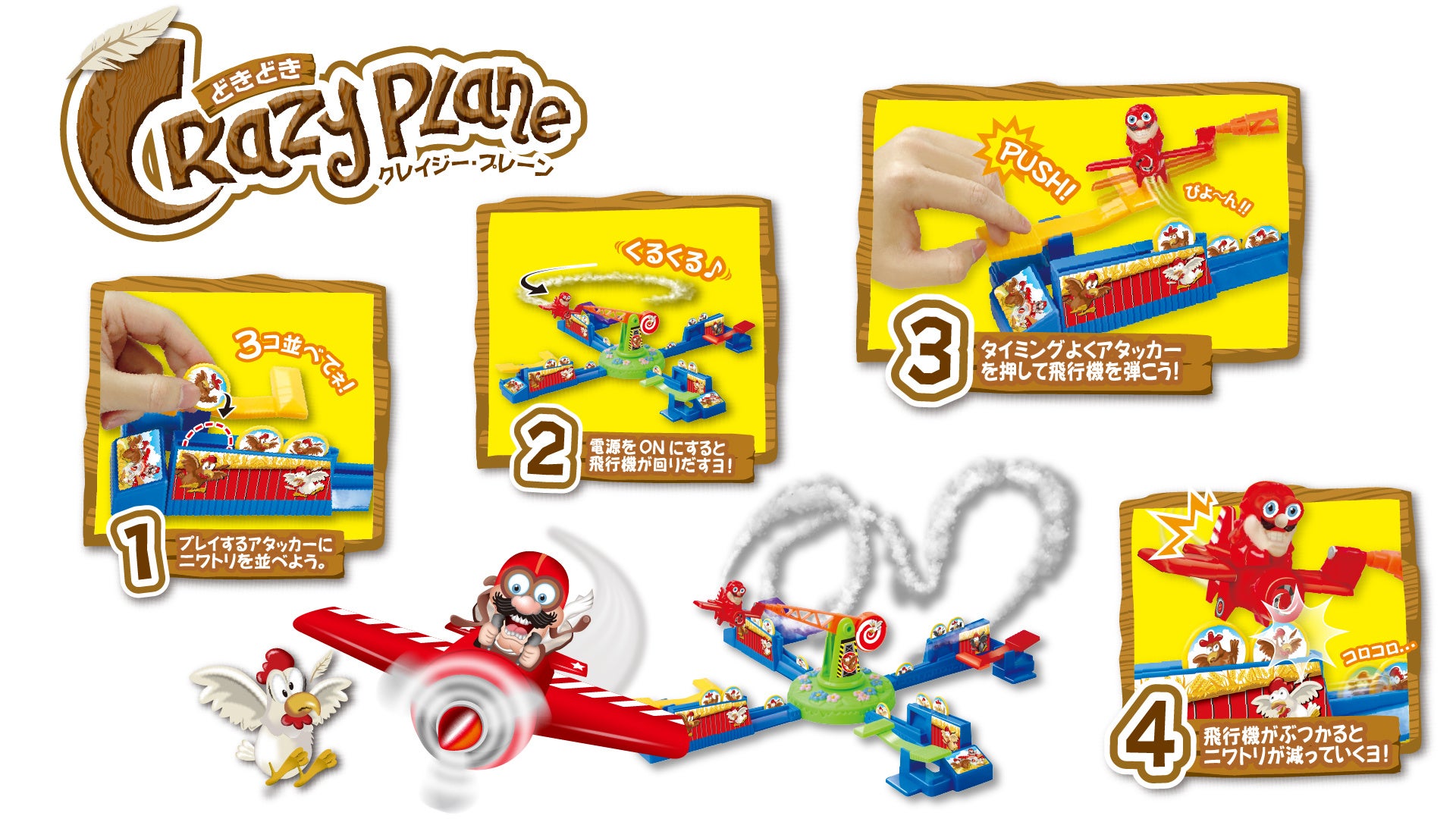 不規則な飛行機の動きを予想するドキドキが楽しいフライトゲーム。最後までニワトリを守れるのはだれだ⁉