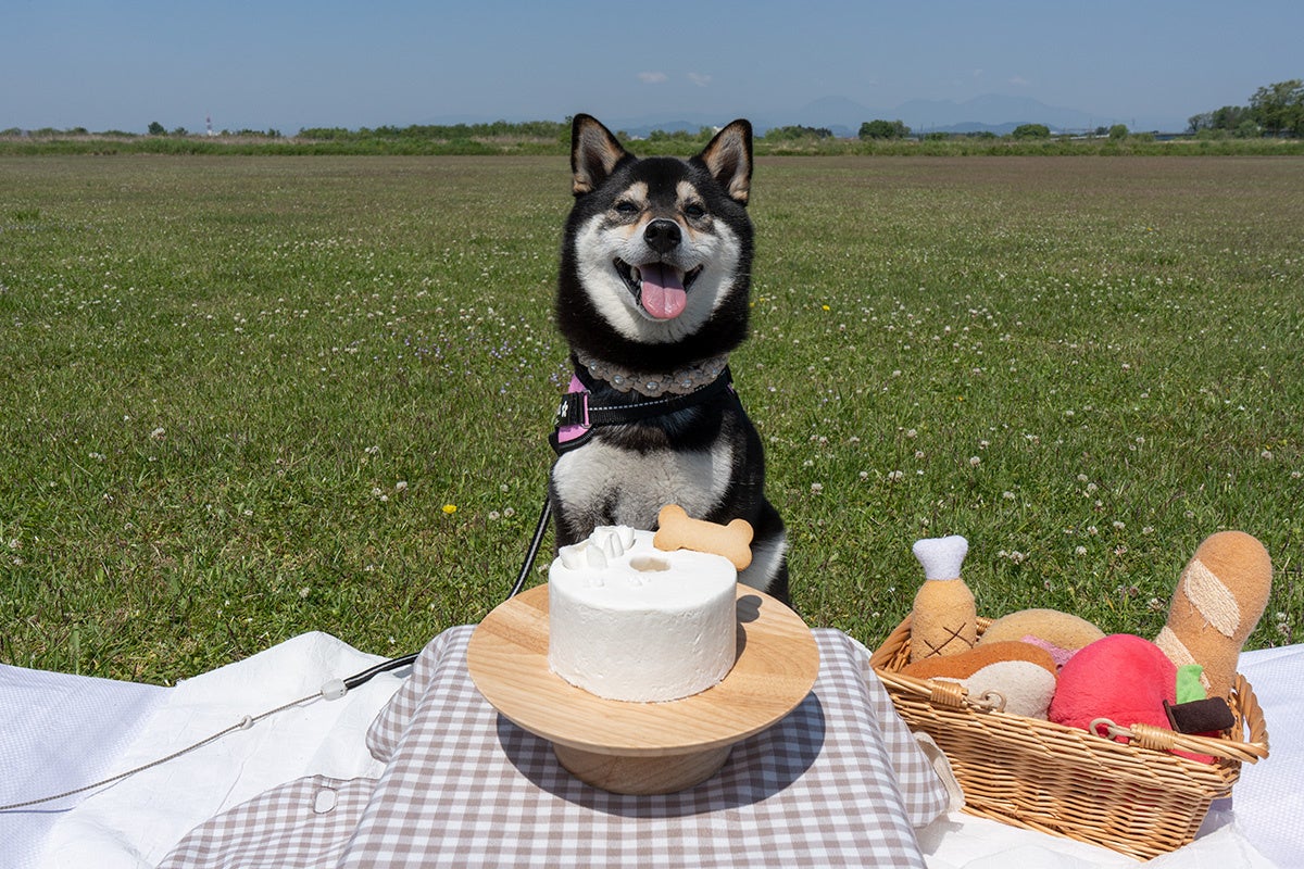 CHIFFON for DOGは、国内産の米粉100%の生地に、豆乳を使用した真っ白なクリームを使用した犬用シフォンケーキです。こちらは人間も美味しく味わえるため、飼い主様と愛犬が一緒にシェアしてお楽しみいただけます。