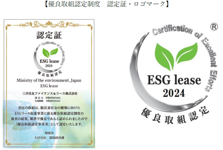 脱炭素社会の構築に向けたESGリース促進事業における「優良取組認定事業者」認定について