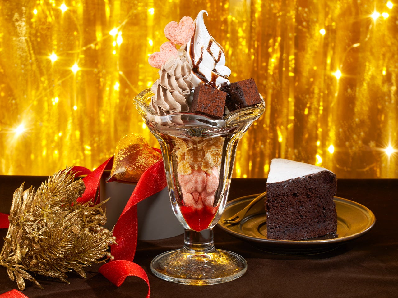 「生チョコ風濃厚リッチガトーショコラ&ストロベリーハートパフェ」