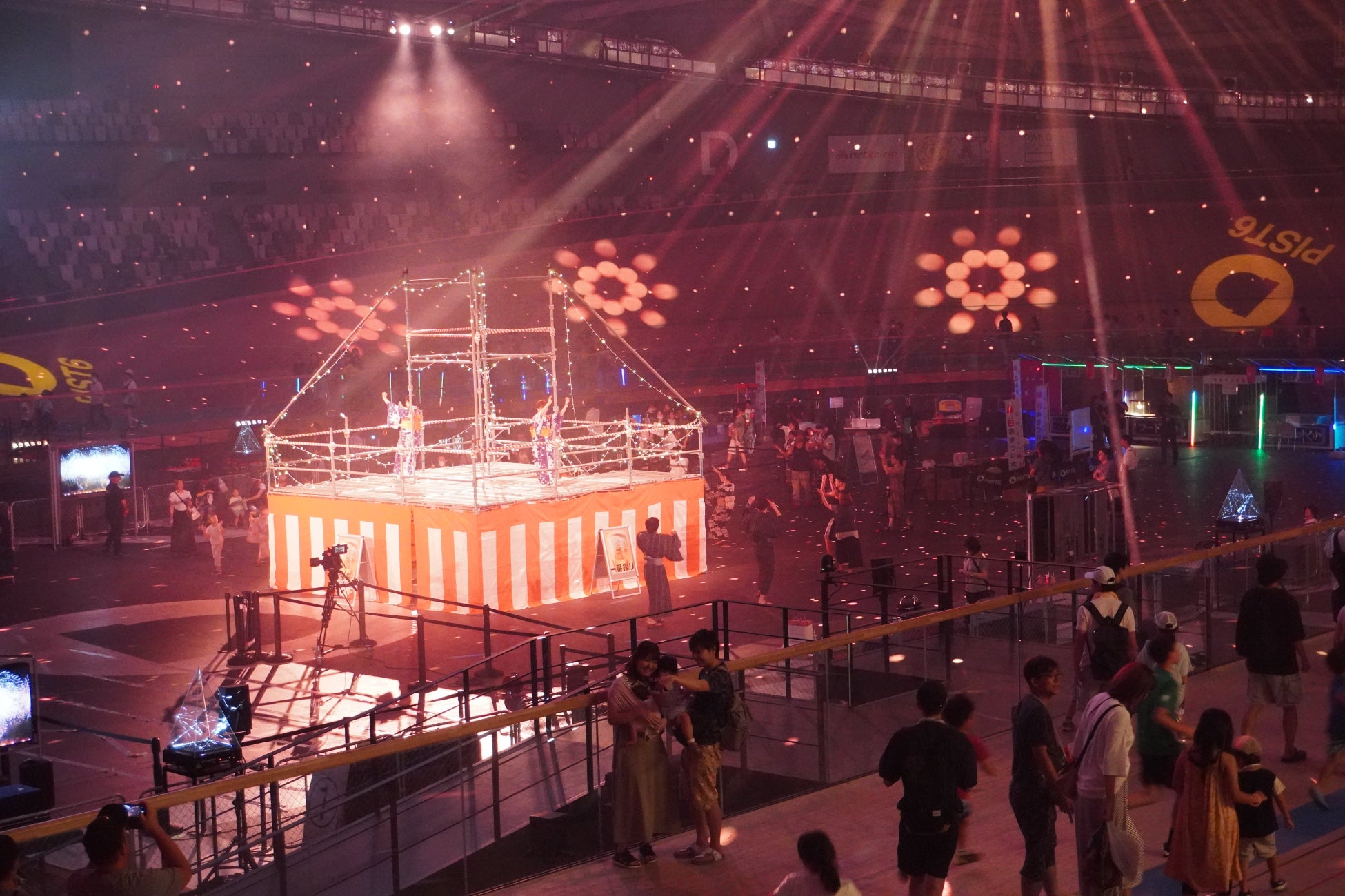 選手が走る250mバンクを歩けるバンクウォークが、夏まつり仕様にレベルアップ!光と音が創り出す特別な体験『バンクウォーク盆踊り』を夏まつり限定で開催いたします。