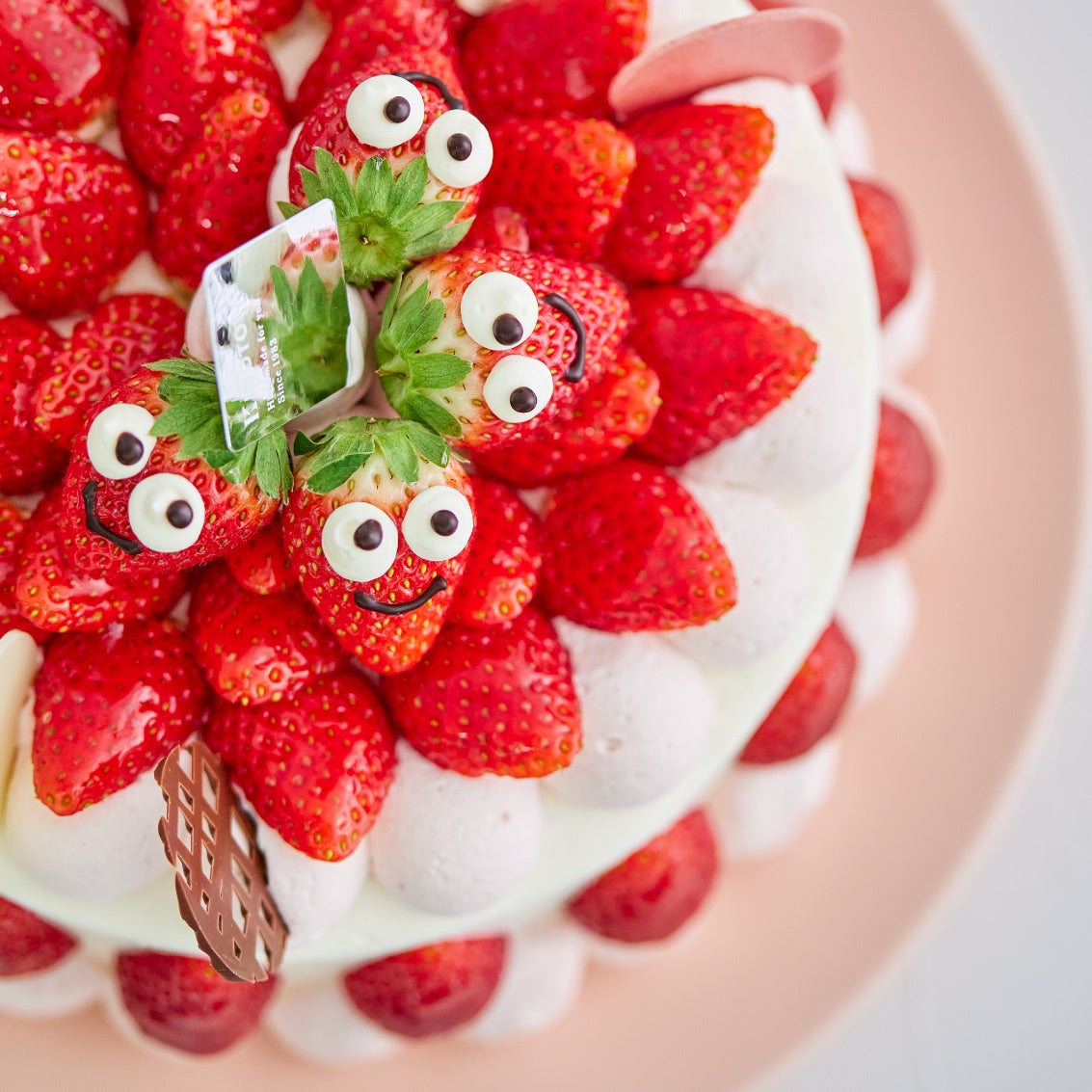 いちご風味の生クリームやチョコレートで飾った、苺たちがパーティを開催しているような子どもから大人まで笑顔になる可愛さです。
