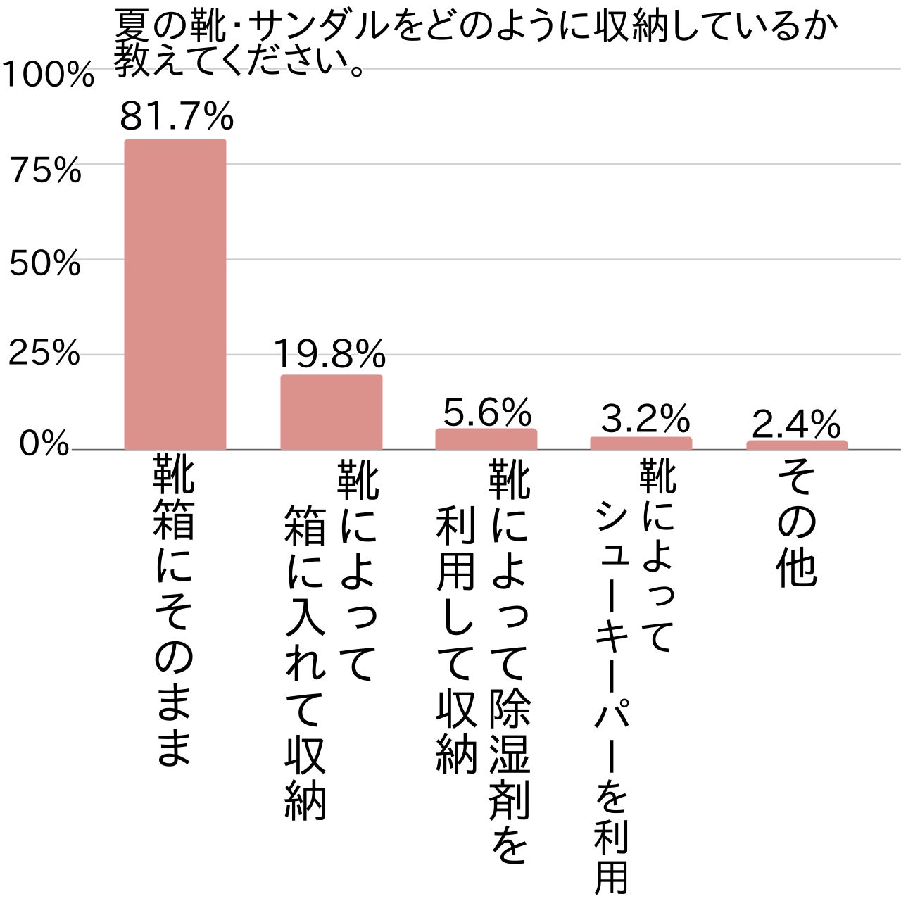 アンケートでは次に、夏の靴・サンダルをどのように収納しているか尋ねました。
