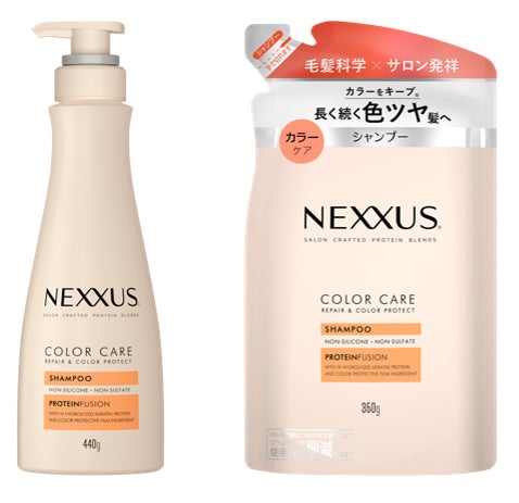 そしてこの度、カラー後の色落ちに悩む方に向けて、ユニリーバ・ジャパン初の色落ち防ぐカラー保護膜成分を配合した、「リペアアンドカラープロテクト」シリーズを新発売いたします。NEXXUSの科学の力によって、あらゆるヘアカラーを楽しむ方に、サロン帰りのような色ツヤ髪を、1日でも長くご体感いただけますと幸いです。