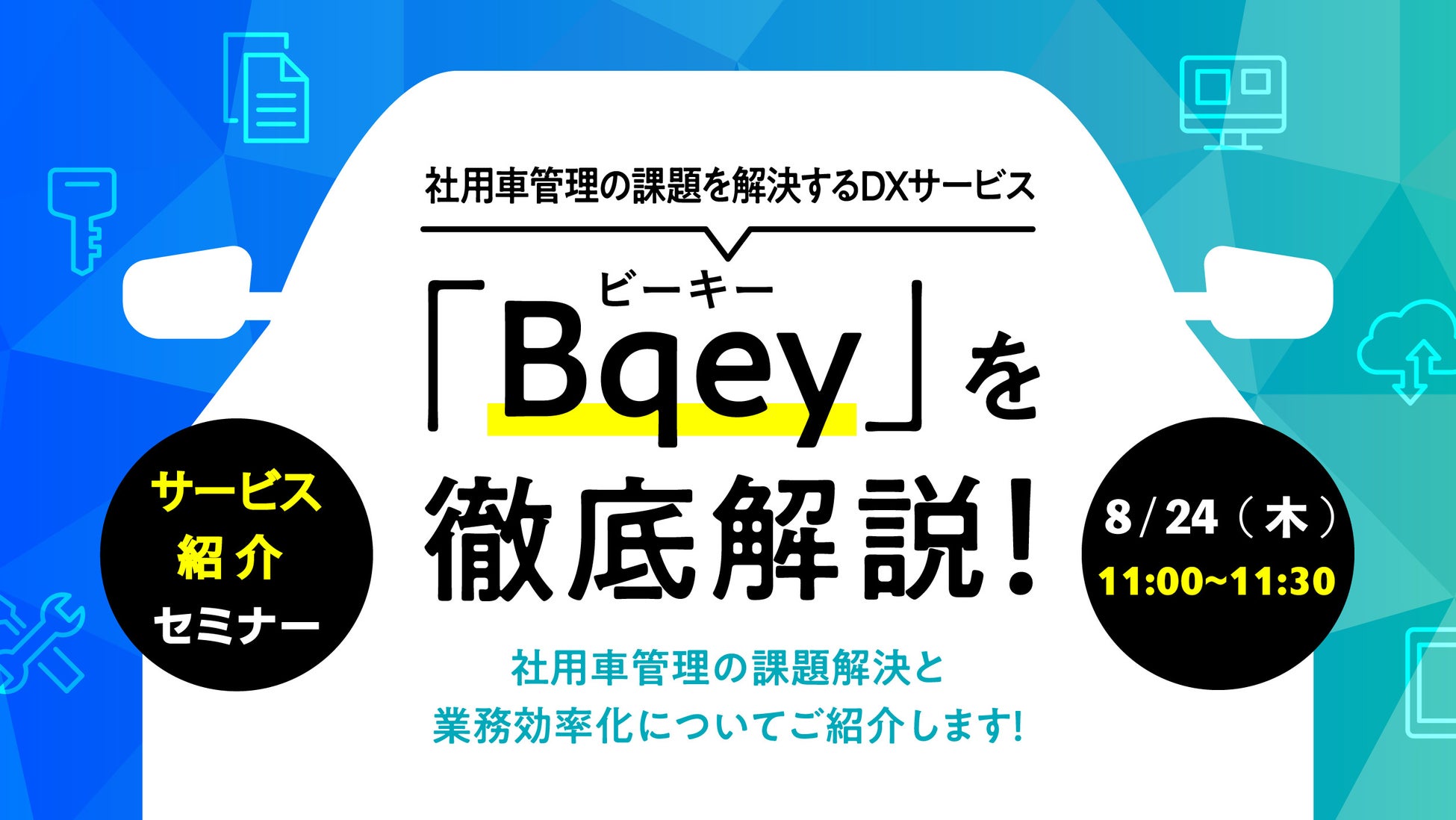 そこで東海理化では、今注目を集めている社用車管理システム「Bqey」を紹介するウェビナーを開催します。まずは気軽にシステムの内容や使い方を聞いてみませんか?皆様のご参加を心よりお待ちしております!