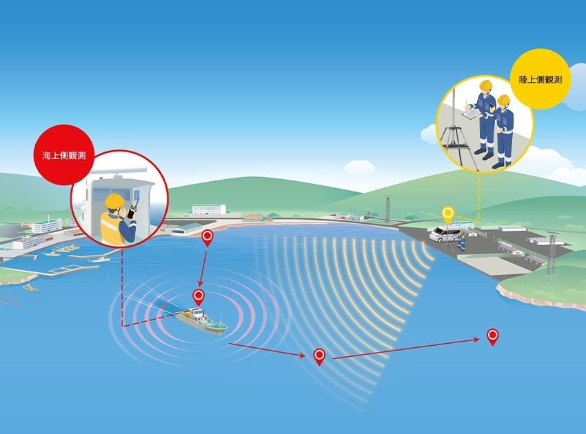 洋上風車建設エリアにおける無線電波環境は風車建設時から建設後も重要な役割を果たすため、電波強度を事前に把握することで、建設時・運用時の通信確保に役立ちます。当社では、長年にわたり海と船の世界で培った知見と技術を活かし、無線電波環境を総合的に調査します。