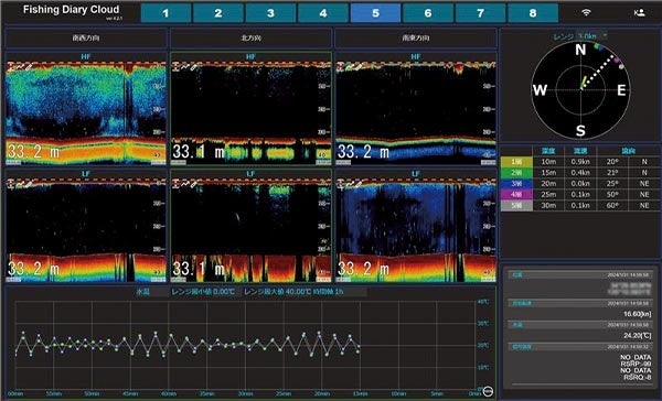 定置網内の魚群や底網の反応を遠隔で監視できます。