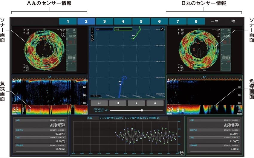 クラウドを介して複数船の操業データを画面共有できます。