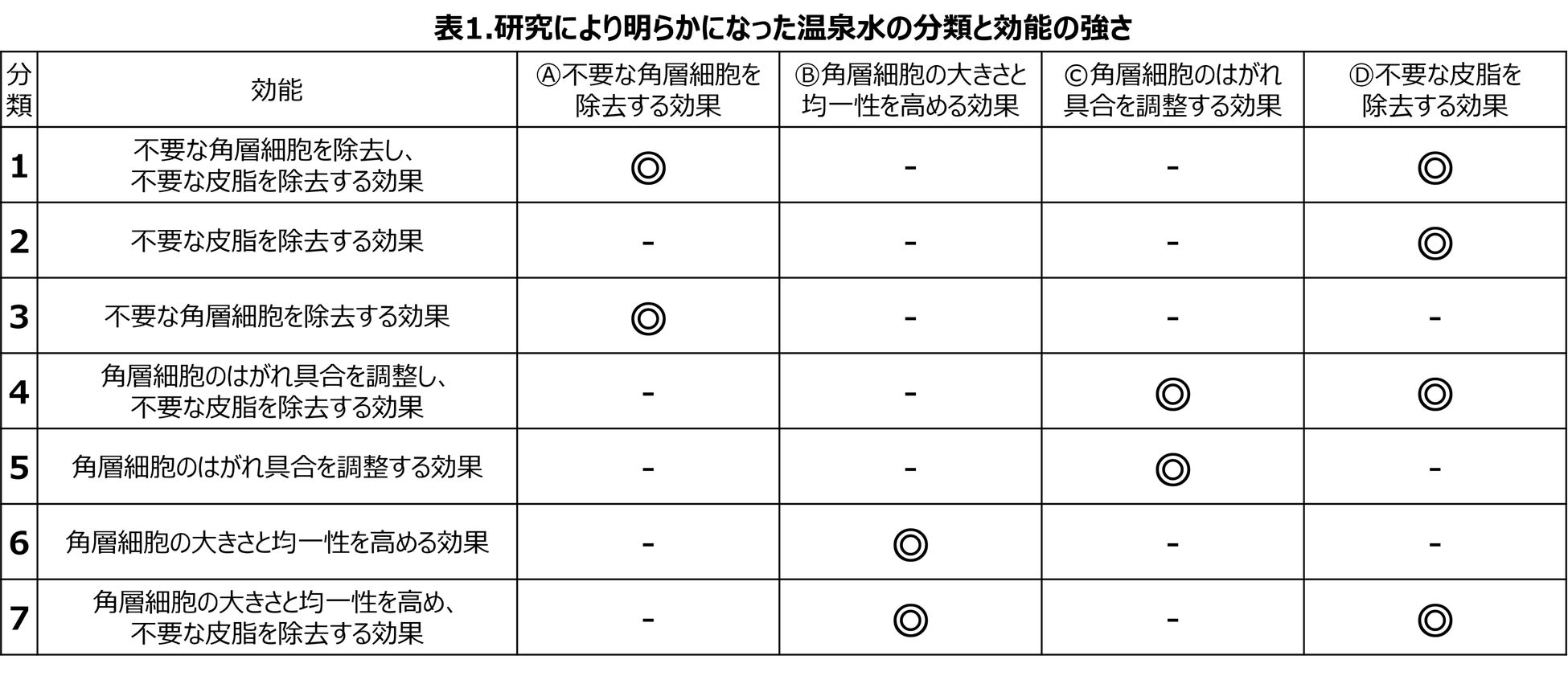 分析の結果、31種類の温泉水は以下の7タイプに分類されることが分かりました(表1)。