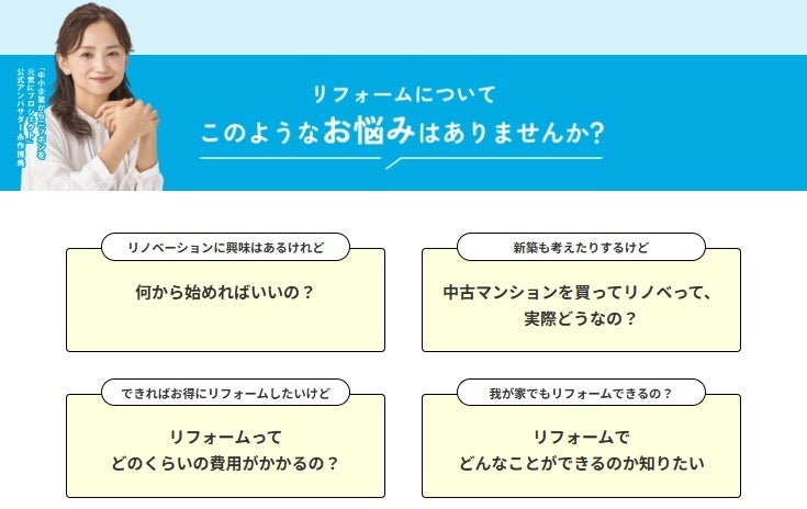しかし、リフォームを考える上で、費用や進め方がわからず不安に思っている人も多いはず。”インターネットで調べても出てこない情報”や、”自分で調べるのが大変なこと”でも、現場経験豊富なプロがお客様専任の担当者として様々な疑問にお応えします。もちろん情報収集だけのご参加でもOK!