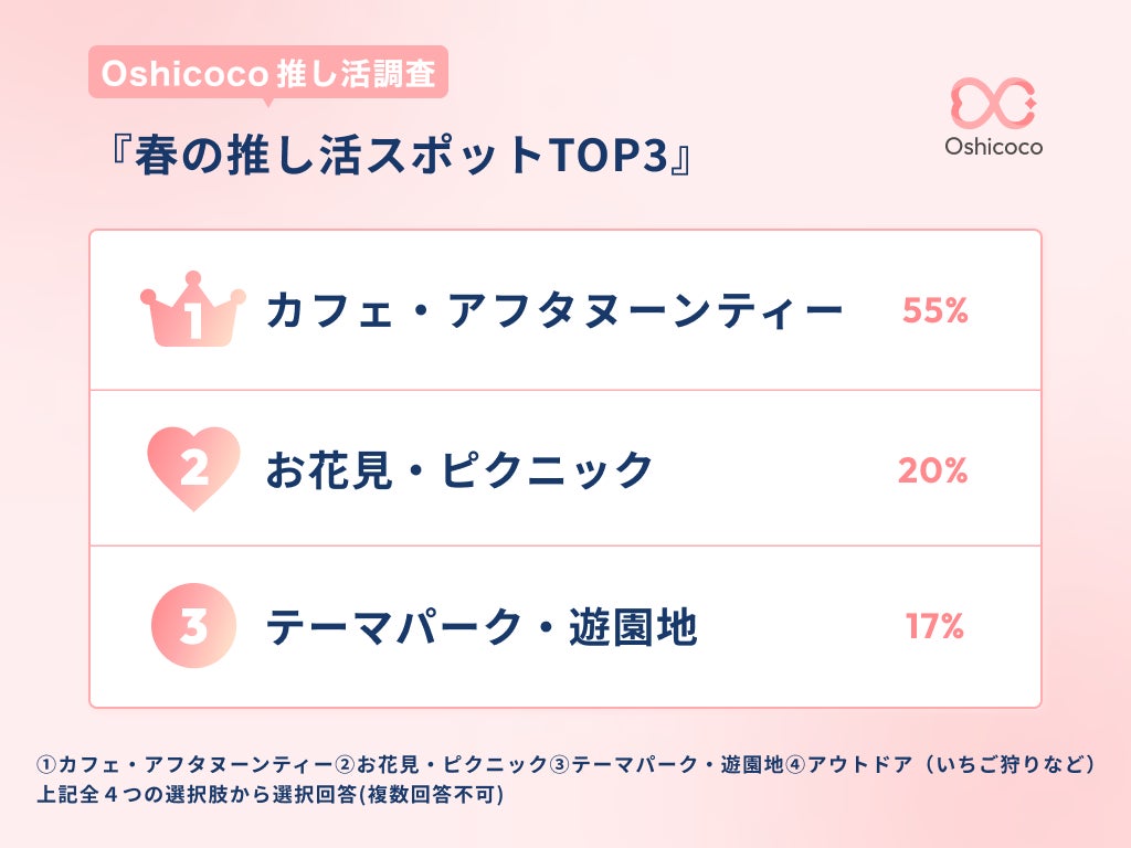 SNS総フォロワー11万人の「推し活応援メディア」を運営する株式会社Oshicocoは、SNSフォロワーの推し活層を対象に『この春行きたい推し活スポット』に関するアンケートを実施しました。