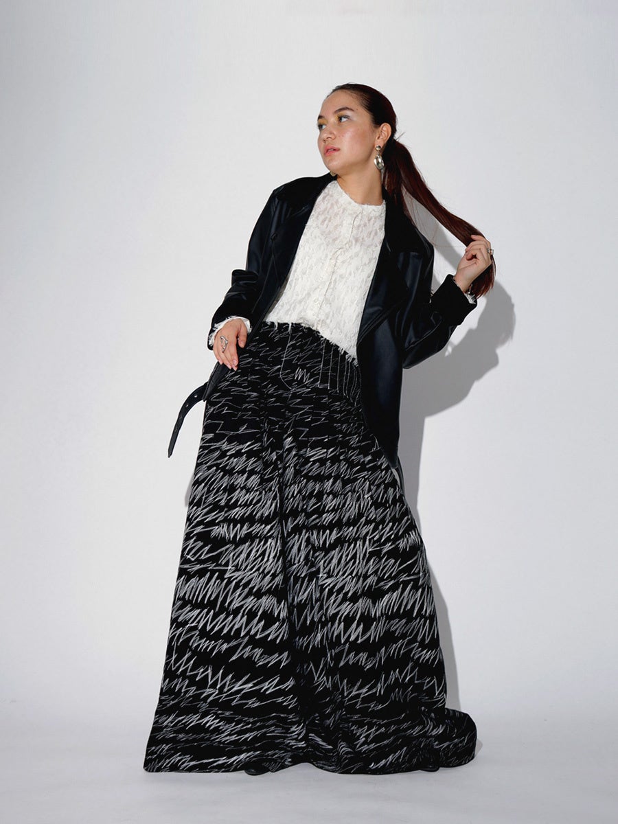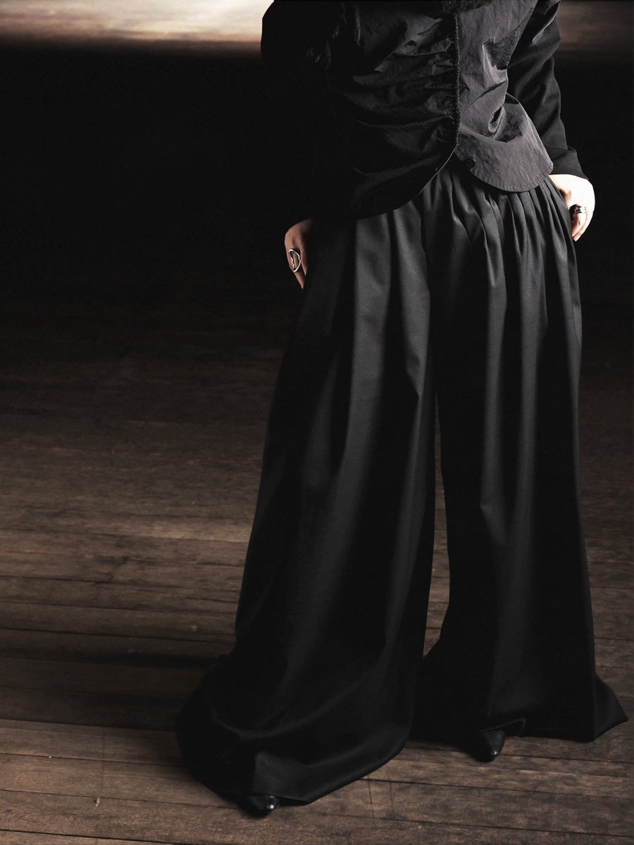 ワイドなシルエットが心地よいシルエットを作り出す。