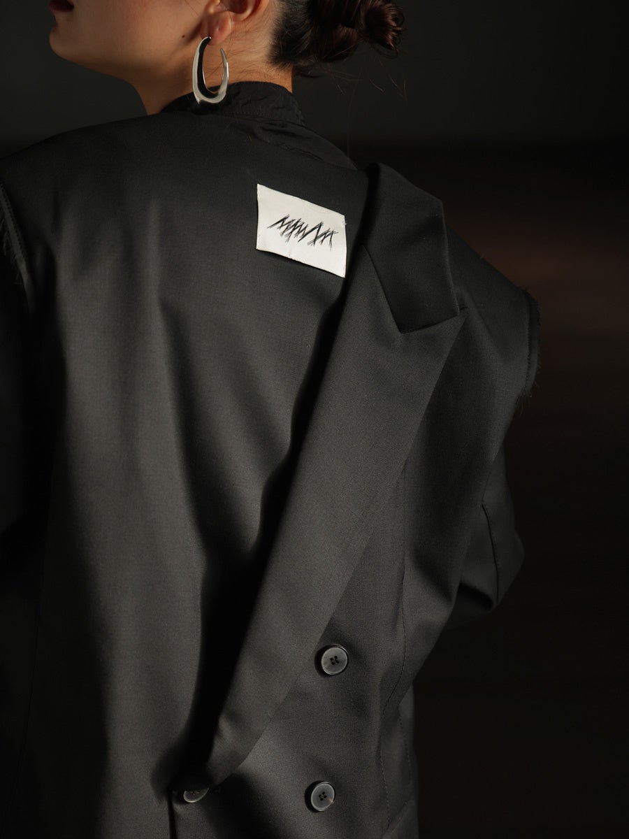 ショルダー部分に内蔵されているパッドが軽く露出されヴィンテージ感あるアクセントに。