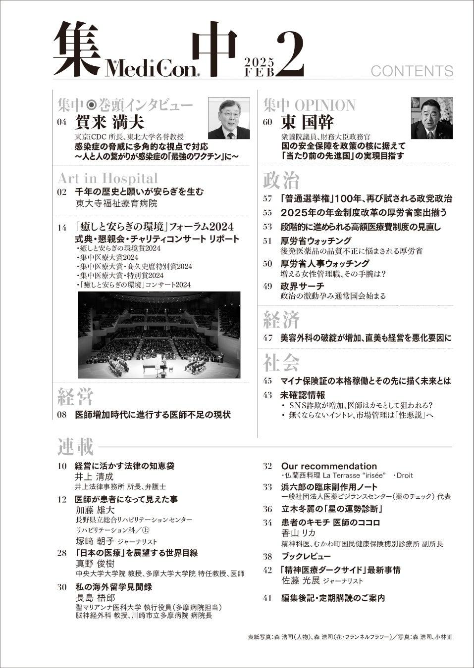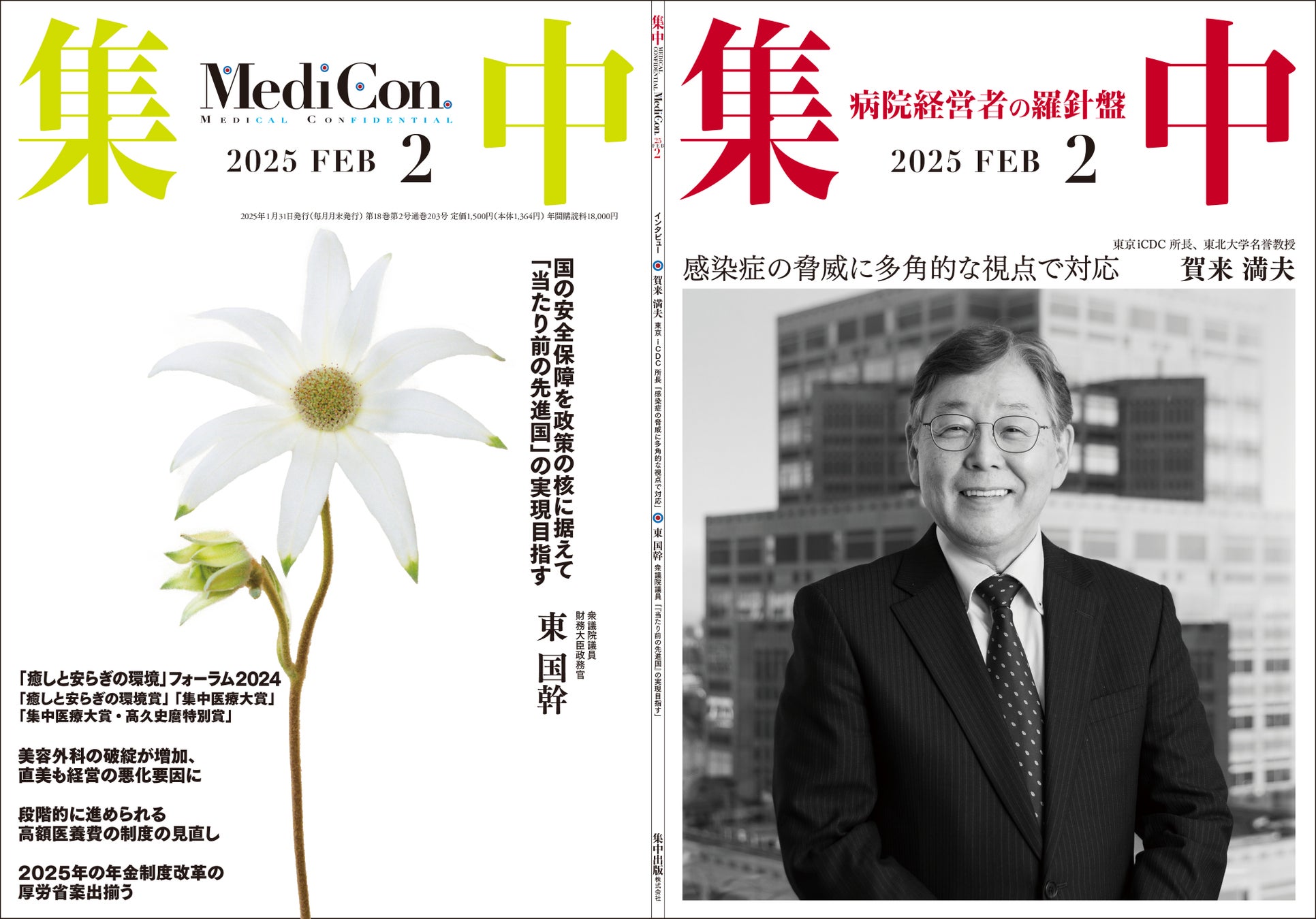 医療情報誌 月刊『集中』2025年2月号 巻頭インタビュー 賀来満夫・東京iCDC 所長/集中OPINION 東 国幹・財務大臣政務官 他