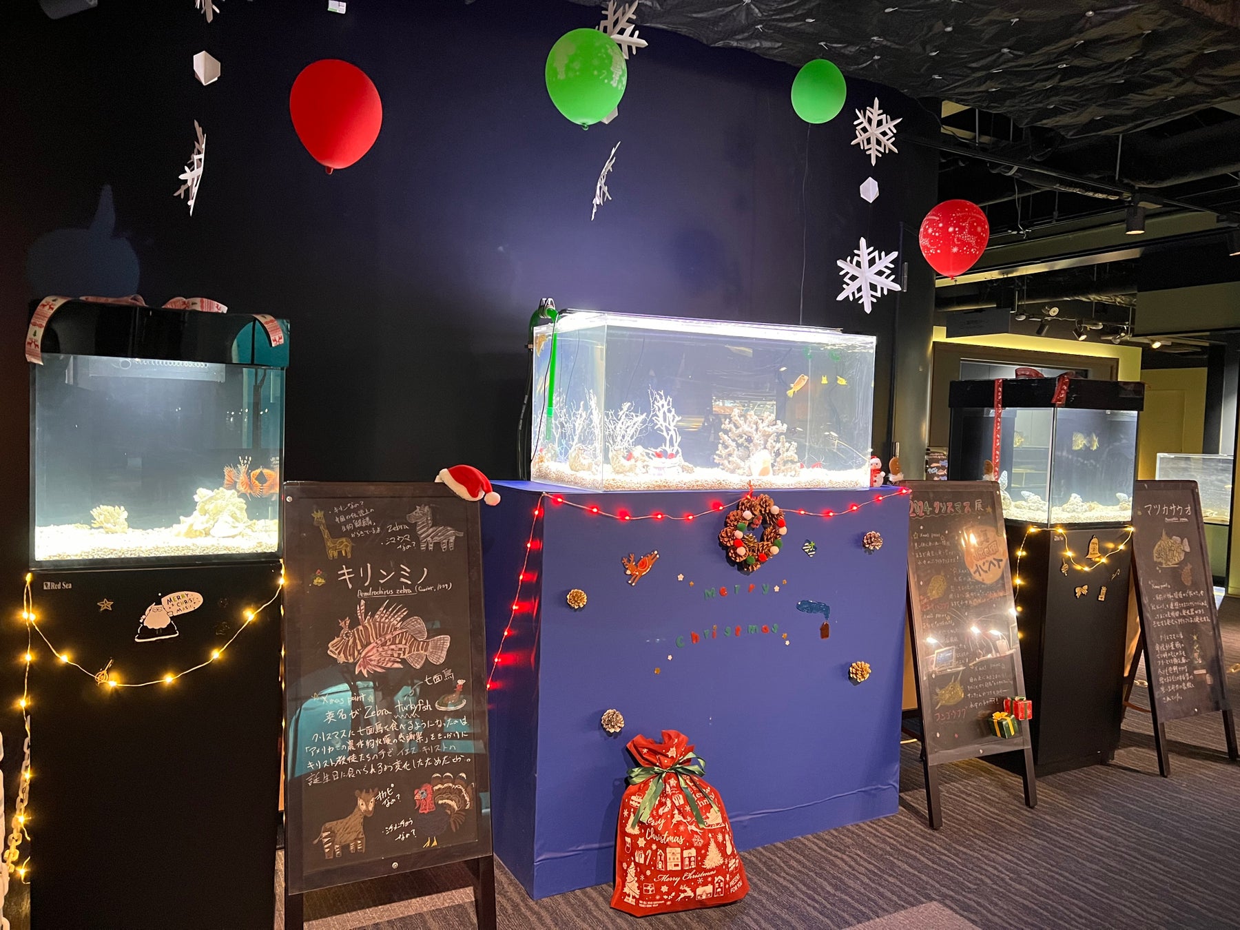 見た目からトナカイを連想させるフグや、クリスマスカラーのエビなど、当館ならではの視点で紹介しています。また、水槽周辺にはクリスマスの装飾を施しクリスマスらしさを演出。