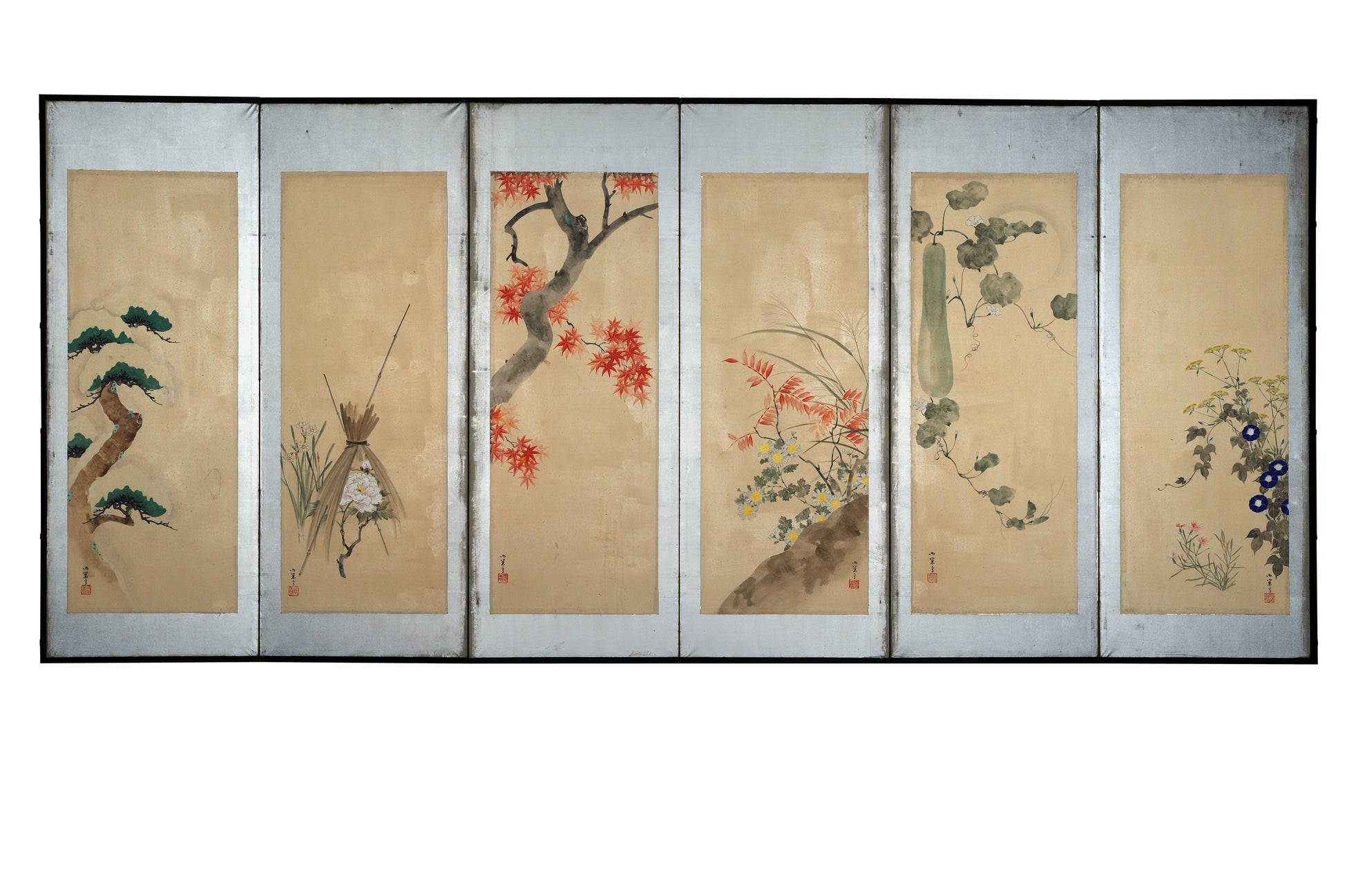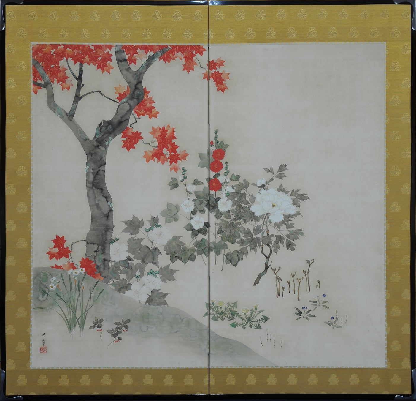 2009年に発見された村越向栄「十二カ月花卉図屏風」(1906年頃、足立区立郷土博物館蔵)