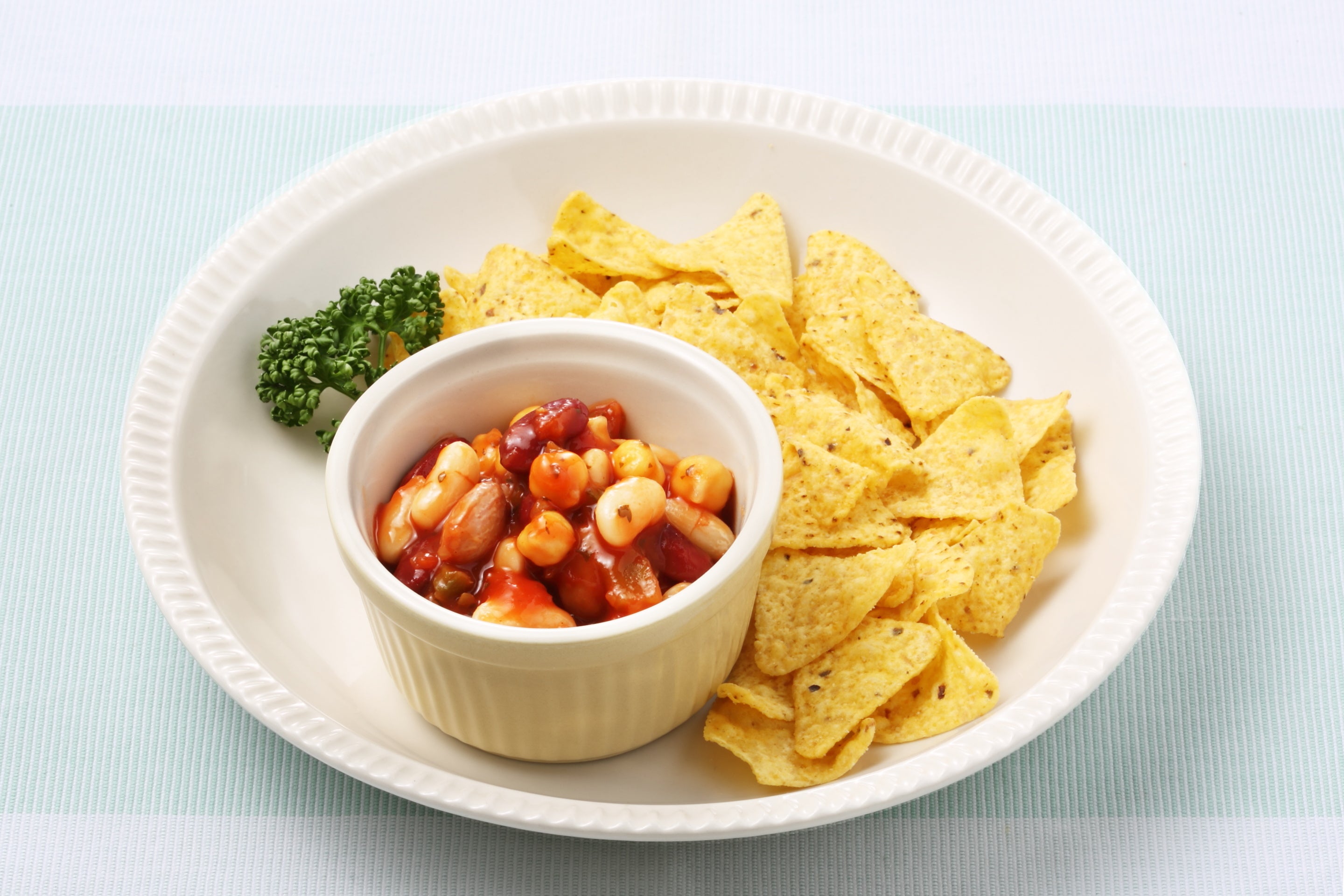 メニュー例(左:魚介と4種豆のマリネ風サラダ仕立て 右:手軽につくれる煮込まないチリコンカン)