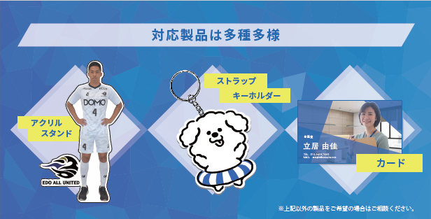 アクリルスタンドからキャラクターの等身大パネルARが飛び出したり、Instagramアプリを使用するとキーホルダーが動き出すARなど、グッズへ新しい魅力・価値を追加します。また、商品はアクリルだけでなくステッカーやカードなど様々な素材にて対応が可能です。グッズ販売やノベルティ配布を通して、新感覚の体験をお届けし、記憶に残るプロモーションをサポートいたします。