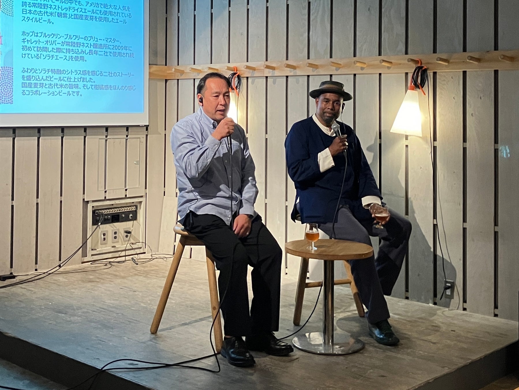既に約20年の付き合いとなるギャレット氏と、木内酒造洋酒製造部ゼネラルマネージャーの谷 幸治が商品開発の想いから、二社の出会い、日米のクラフトビール業界についてなどトークイベントにて熱く語り合いました。