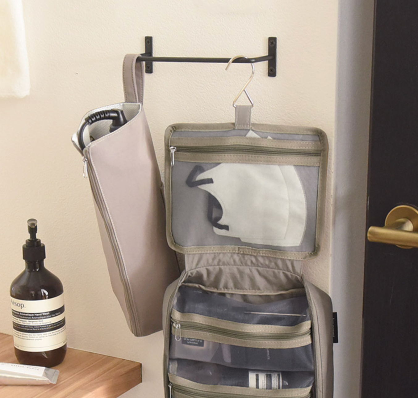 大容量なLサイズの吊り下げポーチは、1泊2日などのショートトリップなら、家族分の洗面道具をまとめて収納することも。けれど長期旅行で持ち物が多くなるという時は、複数を合わせ使いするのも◎。