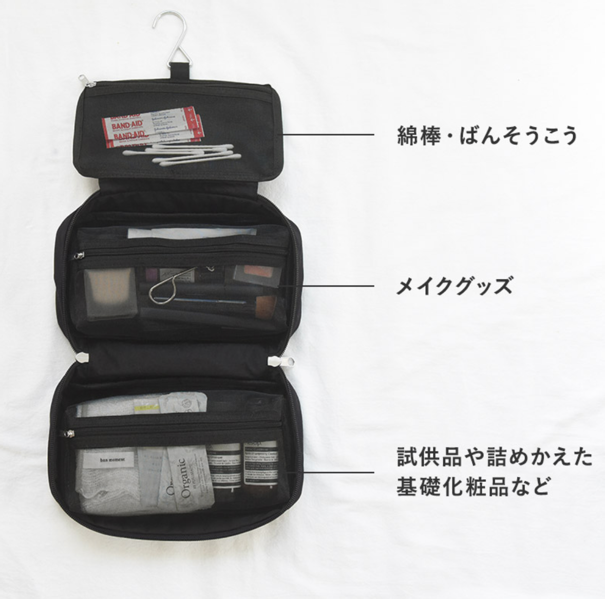 旅行の荷造りで困るのが、メイク道具や洗面グッズなどの小物整理。