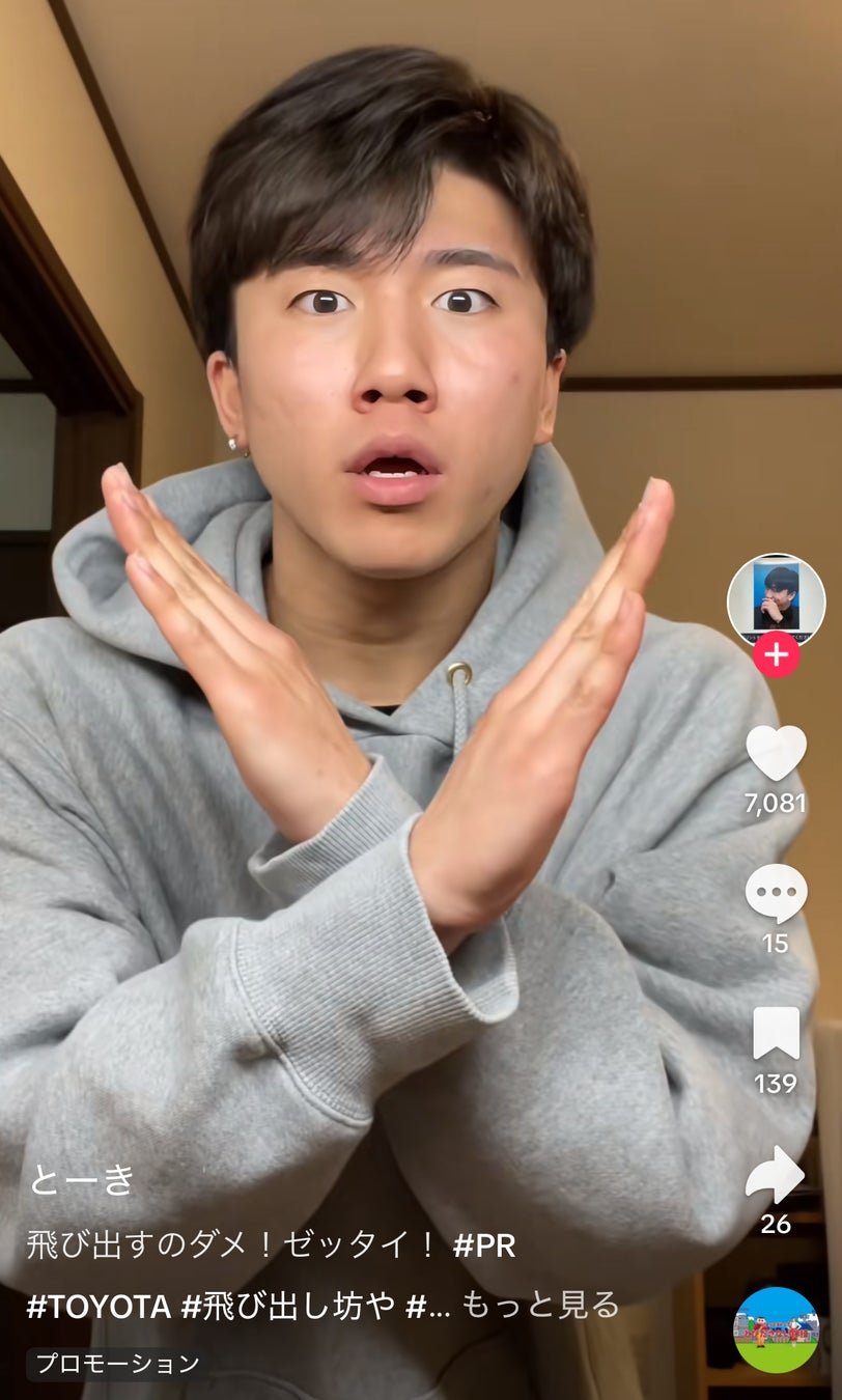 トヨタ自動車株式会社(以下トヨタ)は、滋賀県発の交通安全啓発キャラクター「飛び出し坊や(以下「とび太くん」)」とともに取り組む『トヨタ自動車 とびださないで!プロジェクト』の一環として、「#とびださない体操【ノリノリミックス ver.】」を3月12日(水)より公開しました。本企画は、交通事故に遭うリスクが高い7歳を迎える前の子どもたちが、楽しく交通安全を学べるようにすることを目的としています。公開からわずか1週間で、TikTok向けの体操動画が各SNSでの合計再生回数670万回を突破し、昨年以上に幅広い世代へ交通安全の重要性を楽しく伝えていきます。