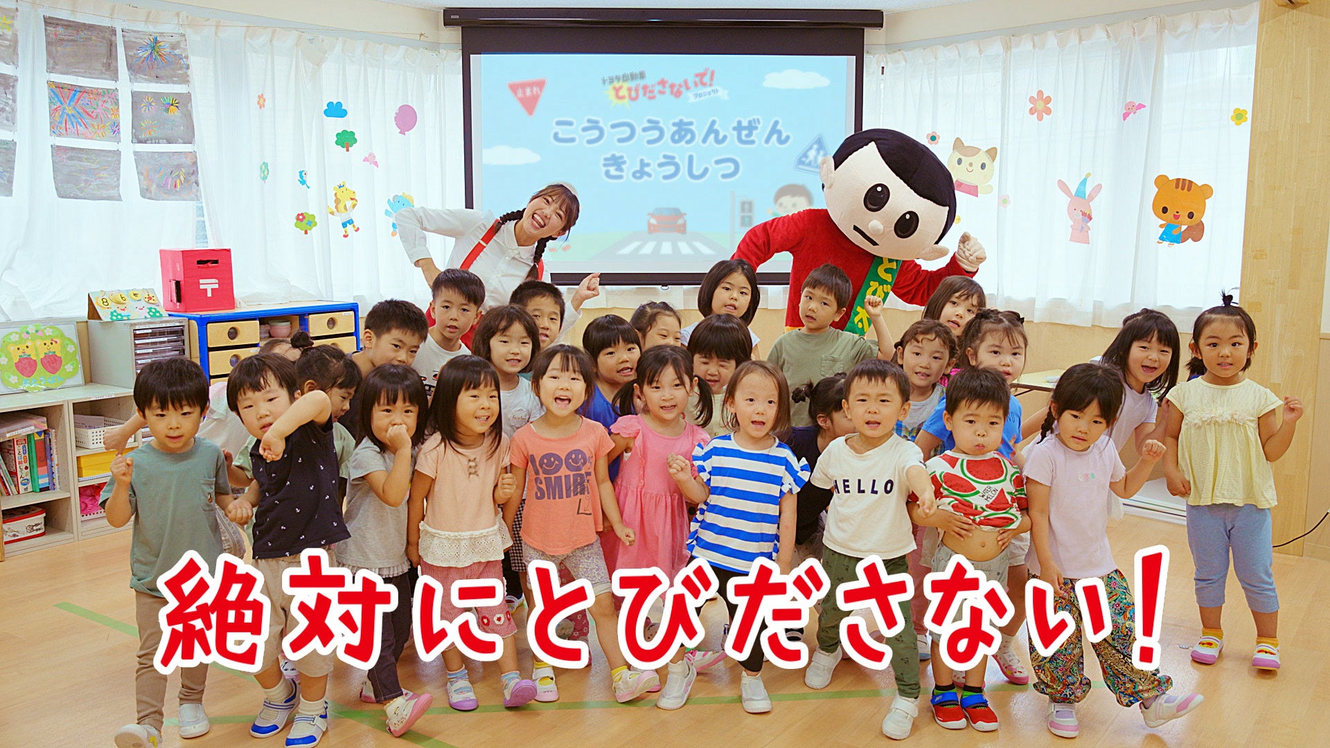 トヨタは、究極の願いである「交通死傷者ゼロ」に向けて、安全なクルマの開発をはじめ、ドライバーや歩行者という「人」に対する啓発活動、信号機設置や道路整備など「交通環境」整備の分野でさまざまな活動を行ってまいりました。2023年からは、滋賀県出身の交通安全キャラクター とび太くんとコラボ企画をスタートしています。第1弾は、危険な「飛び出し」シーンを描き、正しい道路の歩き方を啓発する交通安全動画『飛び出さないで!とびだし坊や』を公開。Xで1499.6万imp、YouTubeで116.8万回再生を突破し、多くの反響をいただきました。また、昨年実施の第2弾からは「トヨタ自動車 とびださないで!プロジェクト」を始動。プログラムの一環として制作した「ピタッとストップ!とびださない体操」は、YouTubeで11万回再生されるなど、親子で楽しく学べるコンテンツを提供してきました。