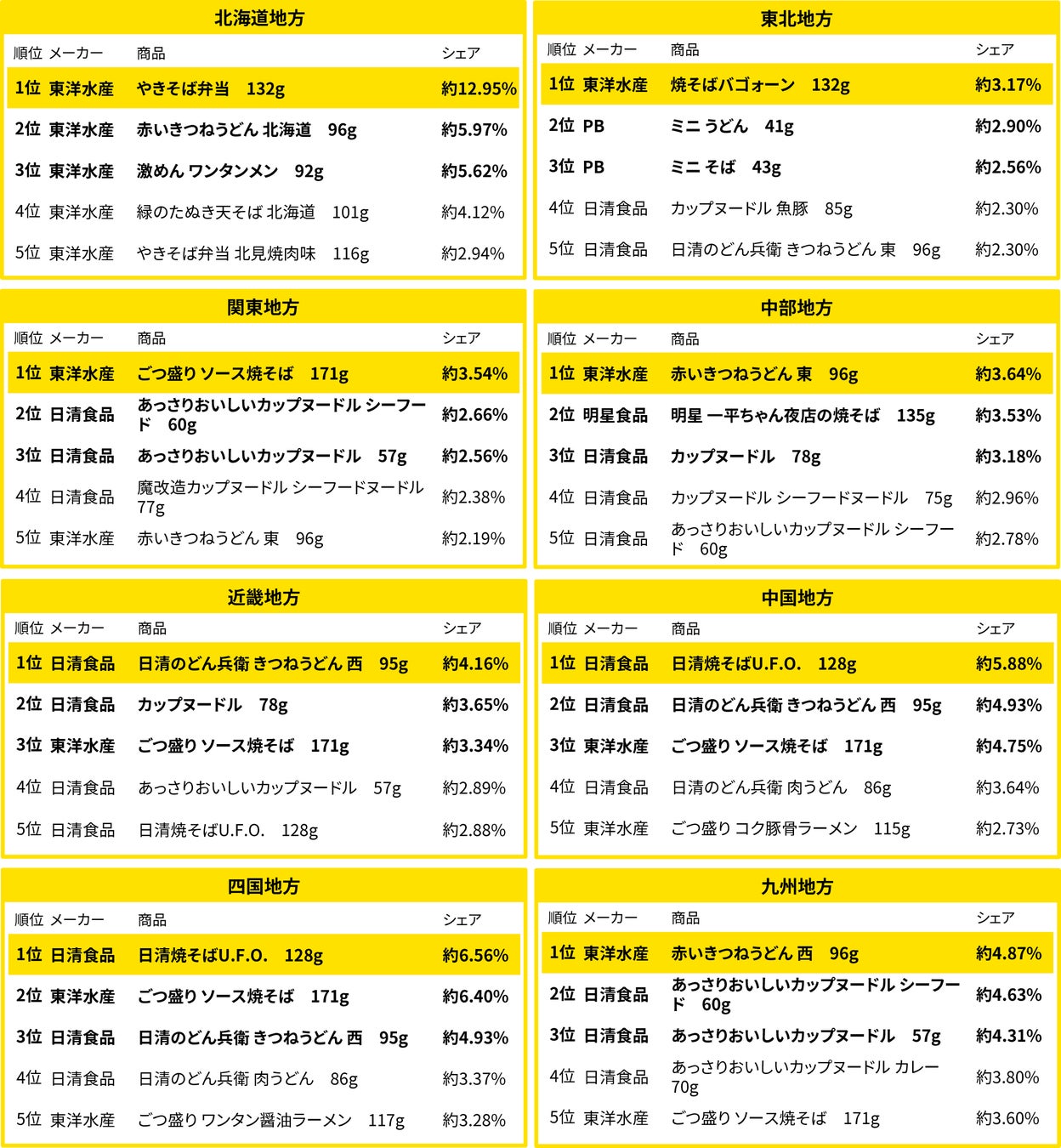 地方別のカップ麺売れ筋ランキング(2025年9月)