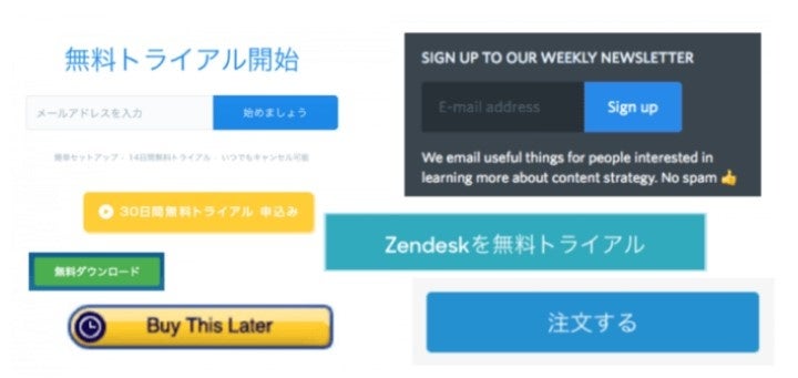 登録ボタンの近くにそえられた「無料で手に入れる」「◯◯人が登録しています」などといった一言です。