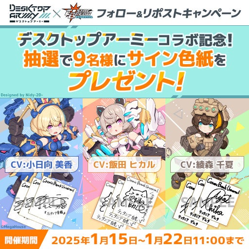 『デスクトップアーミー』とのコラボ開催を記念して、「デスクトップアーミー」キャラクターの声優サイン色紙をプレゼントするリポストキャンペーンを実施中!