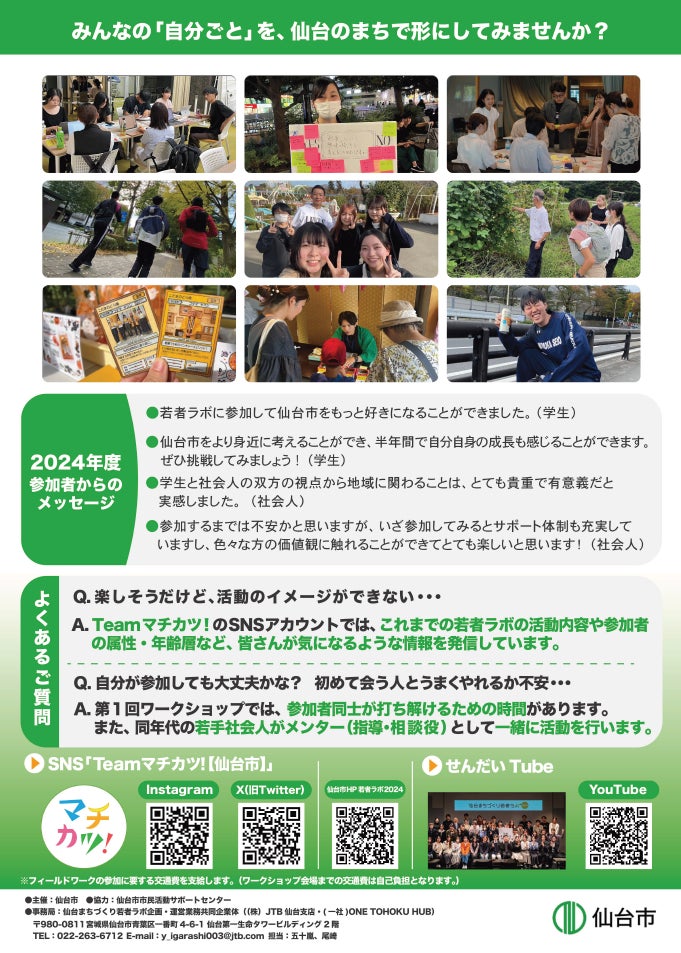 まちの課題をワクワクに変える「仙台まちづくり若者ラボ2025」参加者を募集しています