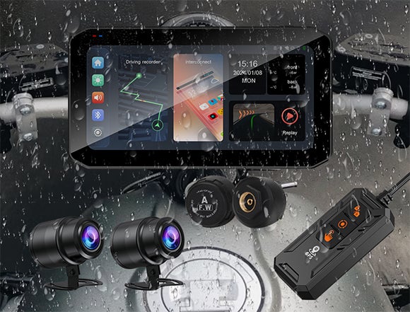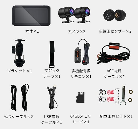 雨やホコリ等にさらされやすいバイクでの利用を考慮し、本体、カメラ、空気圧センサー、有線リモコン、ケーブルも防水・防塵設計となっています。